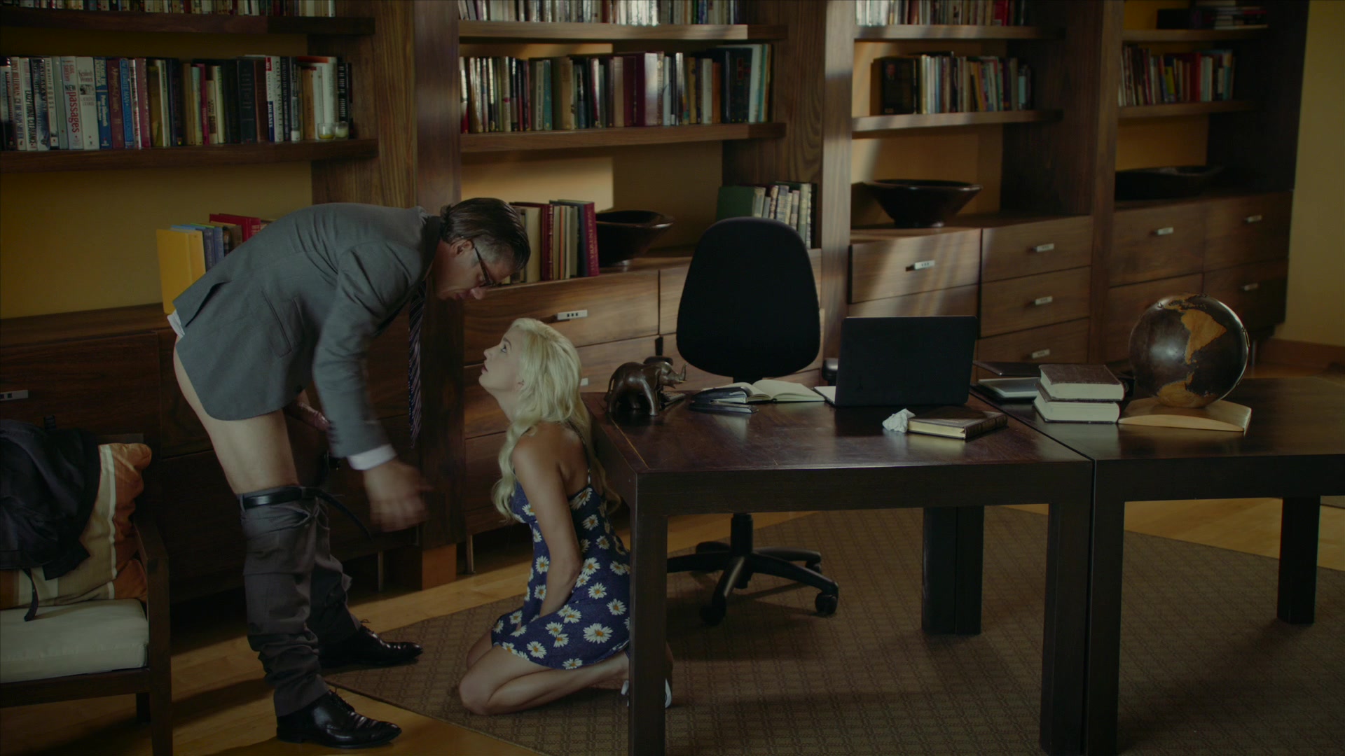 Blonde Eliza enjoys breaking rules and, she needs to see a therapist because of that. Mick wants to try an unconventional approach during therapy so, she needs to take off her panties and receive a spanking. She gives him a nice blowjob after the spanking and then, an unexpected twist. Later, she continues with the blowjob with her ass still colored in red because of the spanking. She takes a nice pussy pumping in cowgirl position briefly and then, she gets her asshole fucked in reverse cowgirl for the first time! Eliza performs ass to mouth and then, she gets her tight hole rammed in doggy style, and missionary position right before Mick glazes her mouth with jizz!